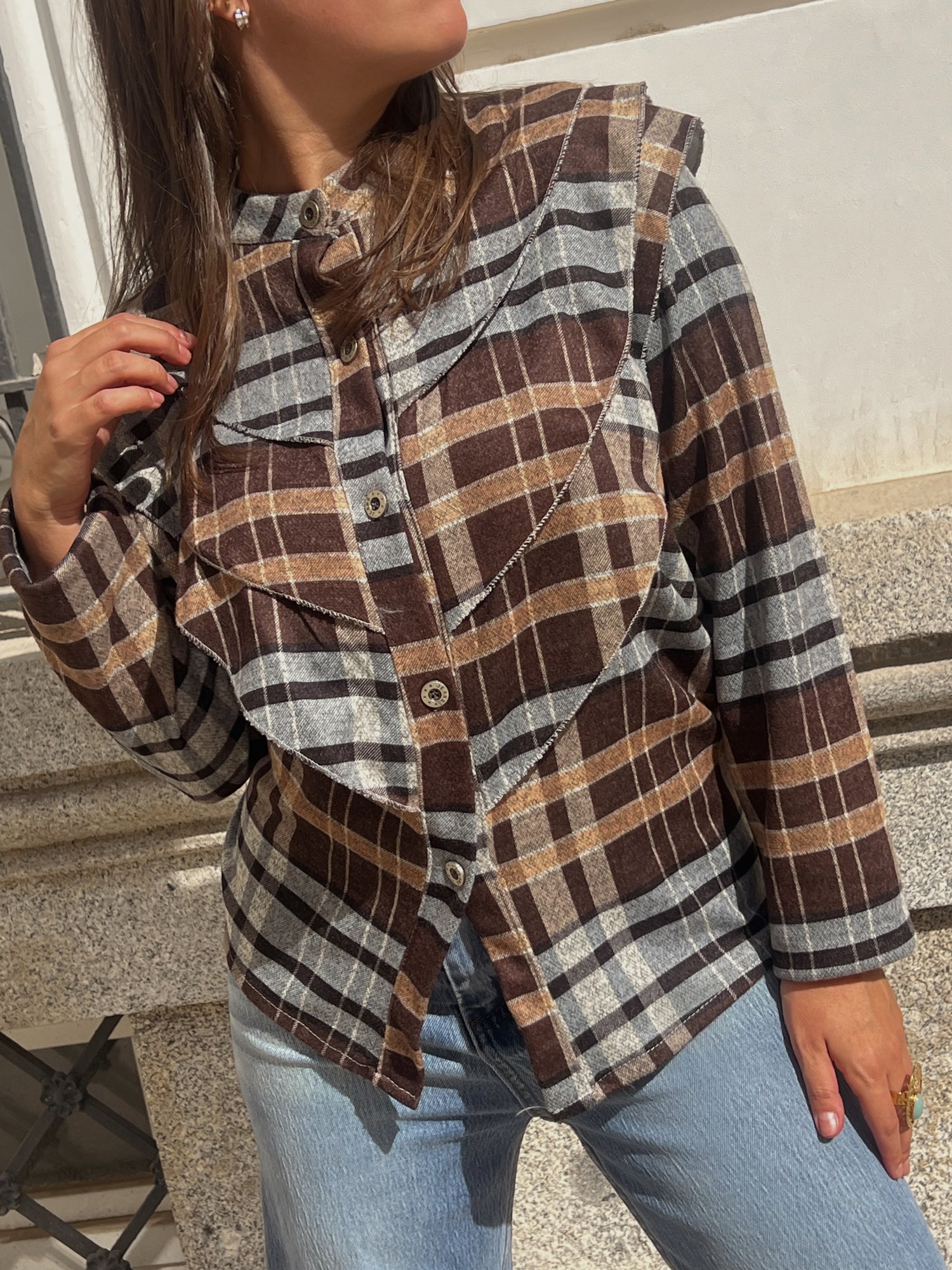 Camisa de volantes. Diseñada con un cierre frontal de botones y un encantador estampado , es perfecta para un look casual con estilo.