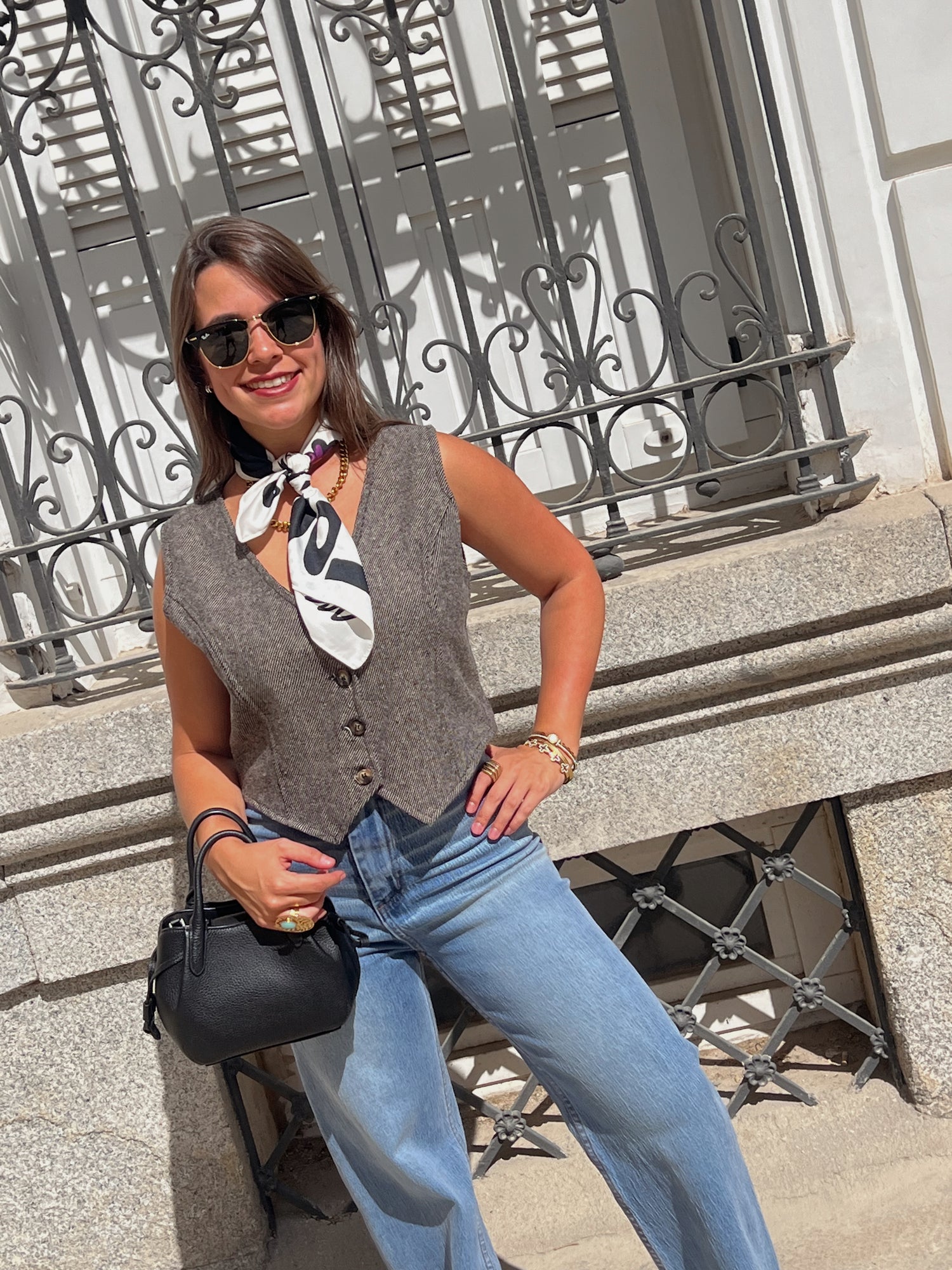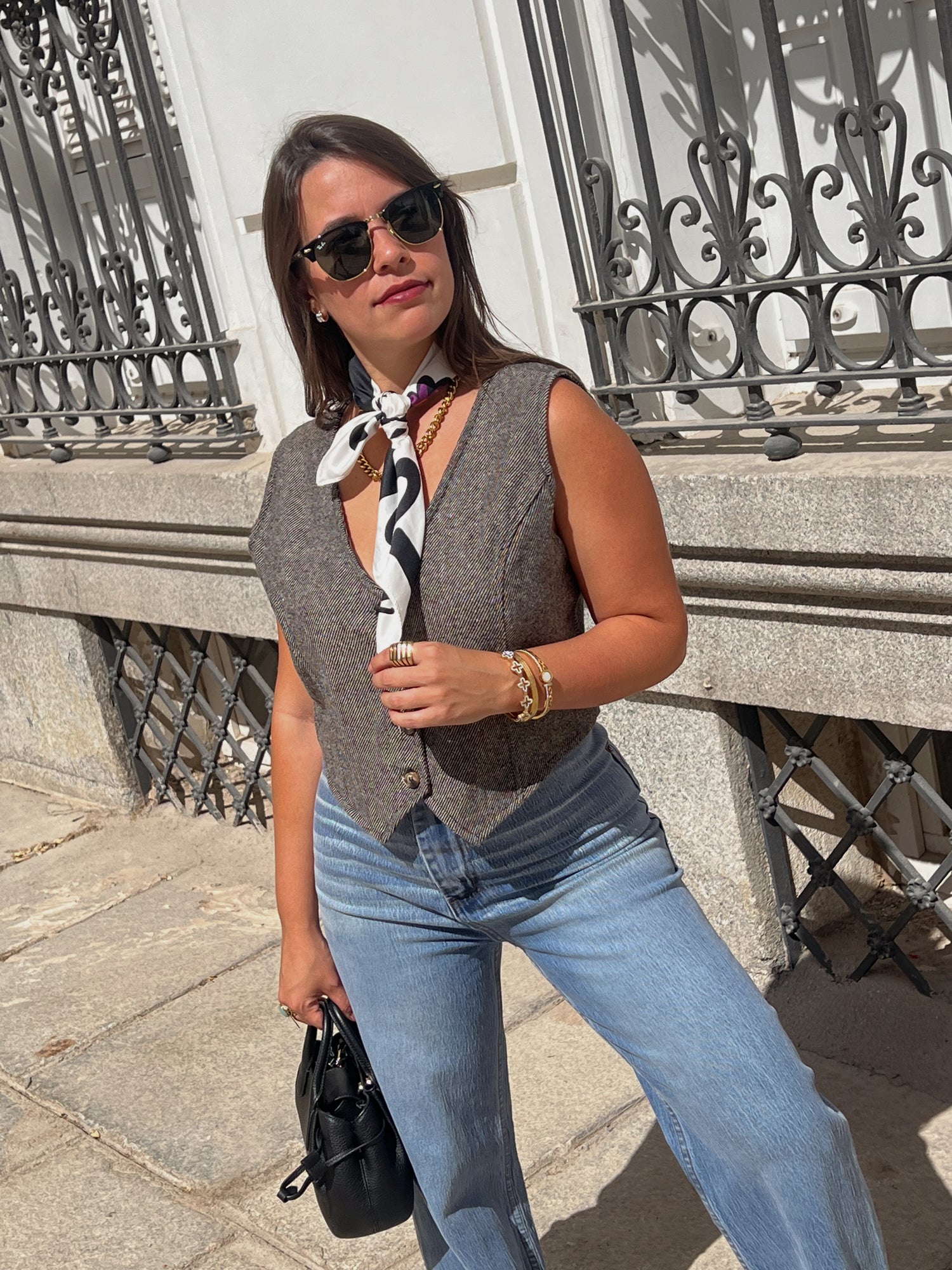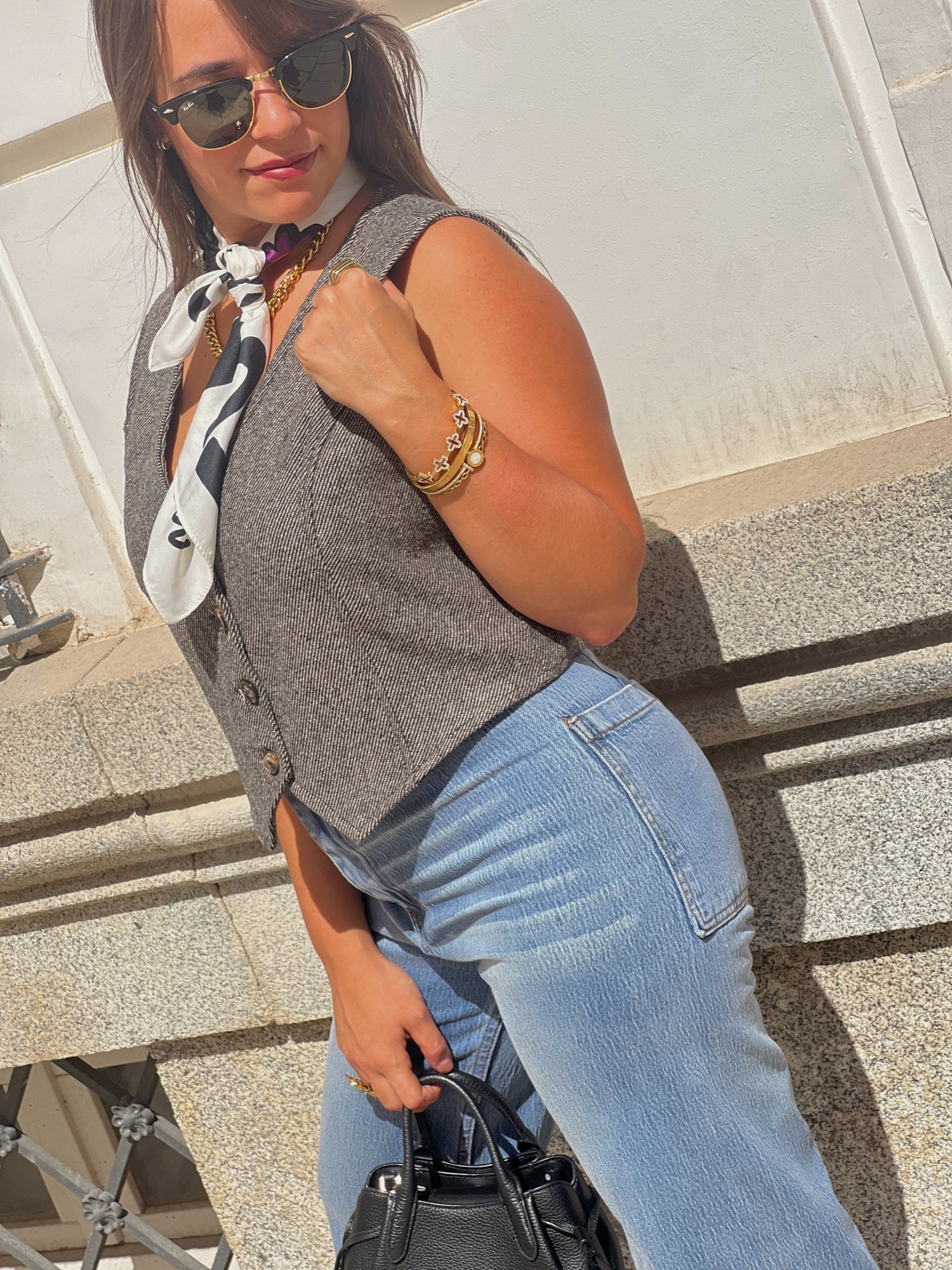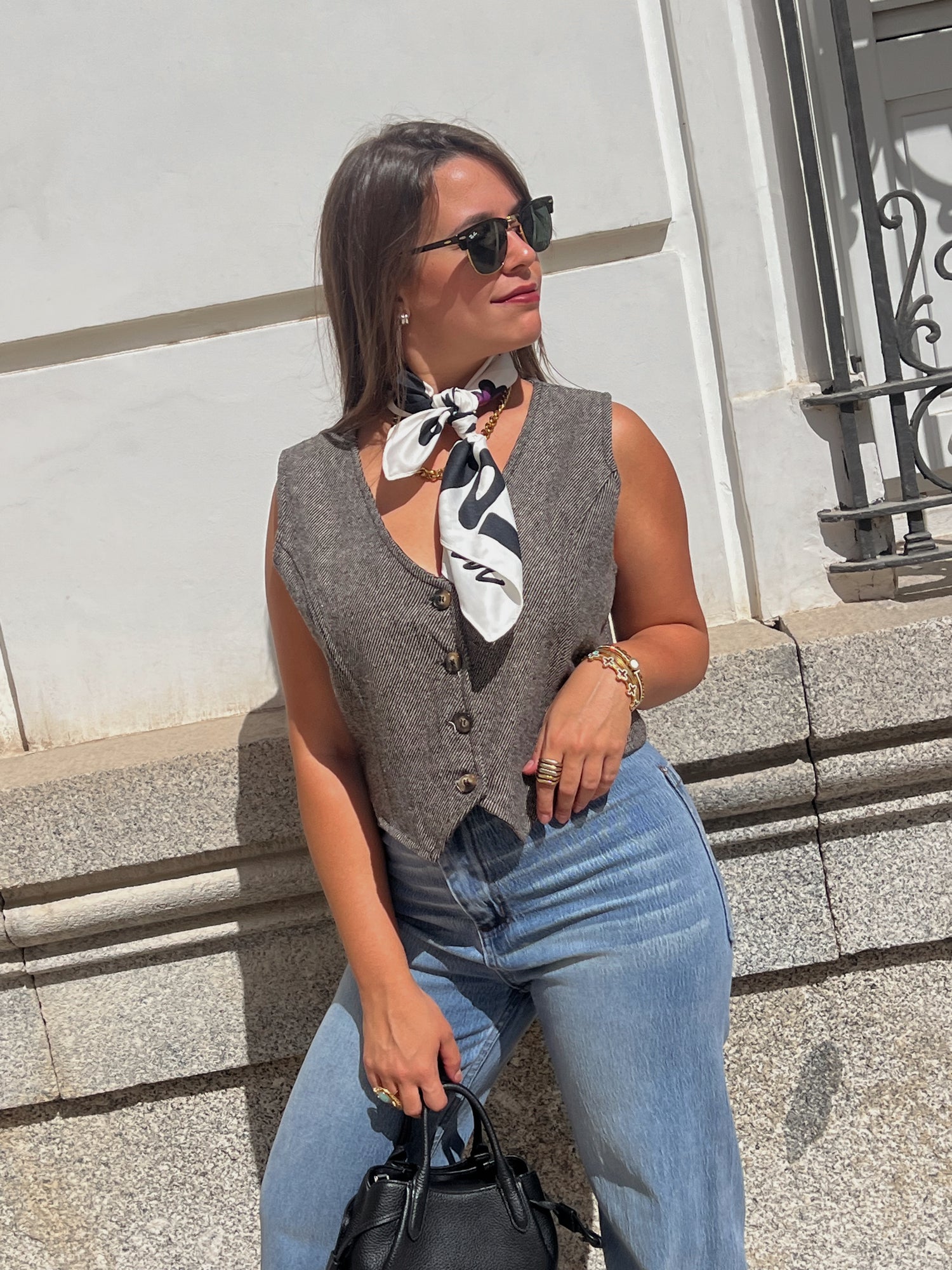 Chaleco estilo sastre escote en V botones delanteros sin mangas, forro interior