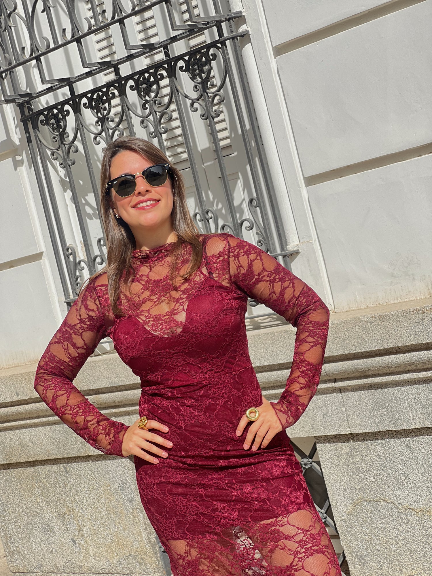 El vestido largo de encaje burdeos es la definición de sensualidad y elegancia en una sola prenda. Diseñado con un delicado encaje floral semitransparente, se ajusta suavemente al cuerpo resaltando la silueta con un aire sofisticado y femenino.
